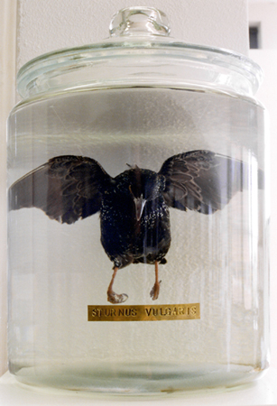 Preserved Starling Specimen, starling, alcohol, glass