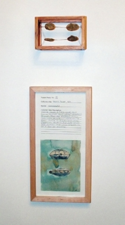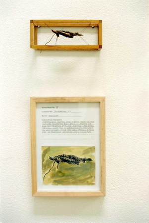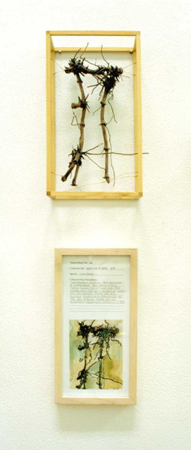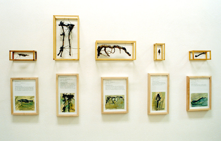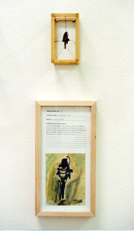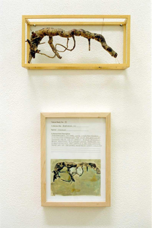 Nature Studies detail, natural specimen, wax, copper wire, wood, ink and watercolor on paper.